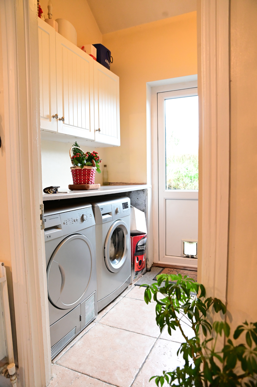 Utility Room Tiled floor, plumbed for washing machine, built in units, access to garden.