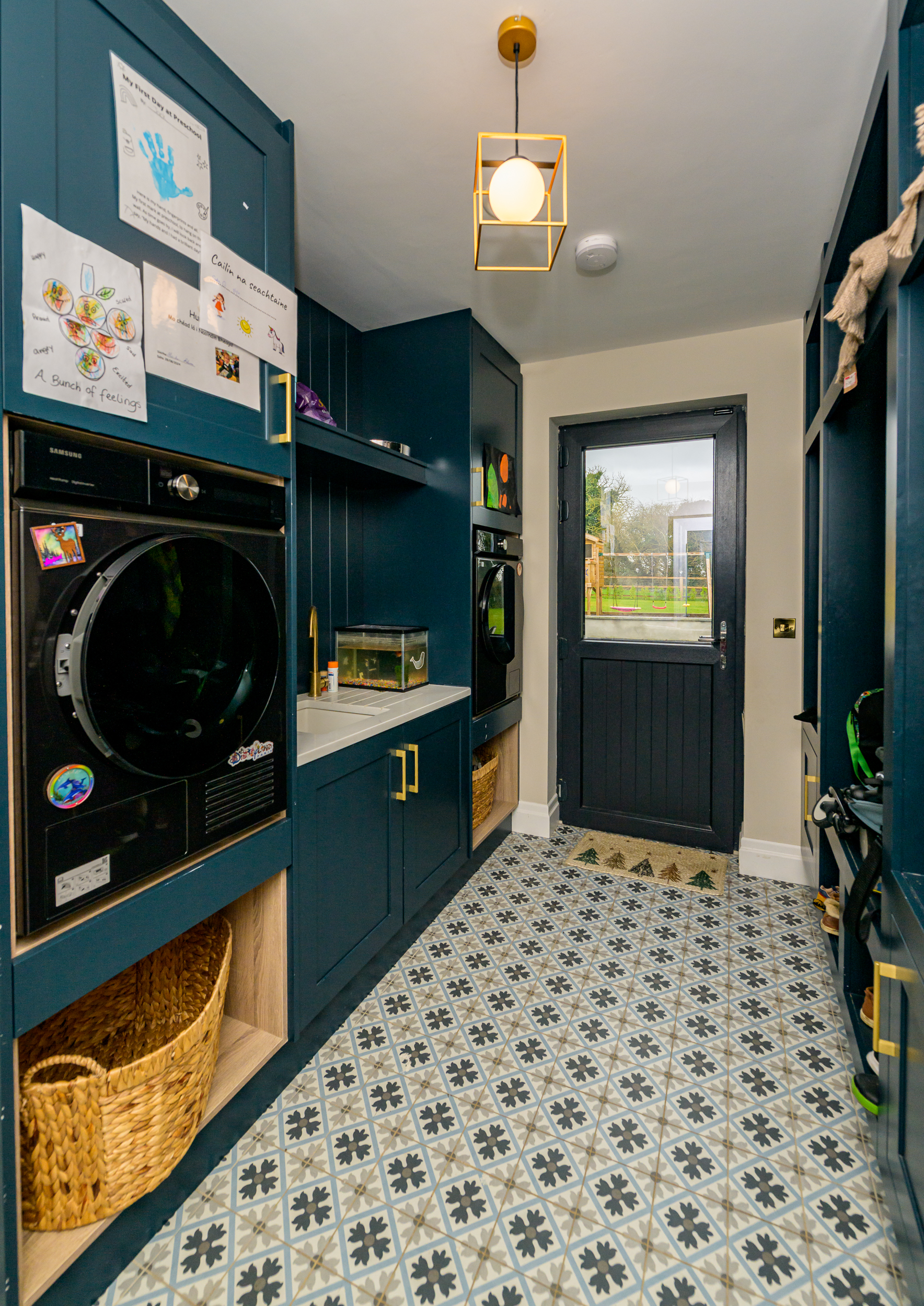 Very large Utility room with back door access to the garden. Sink with left hand drainer, lots of cupboards and plenty of work top space, washing machine and drier.