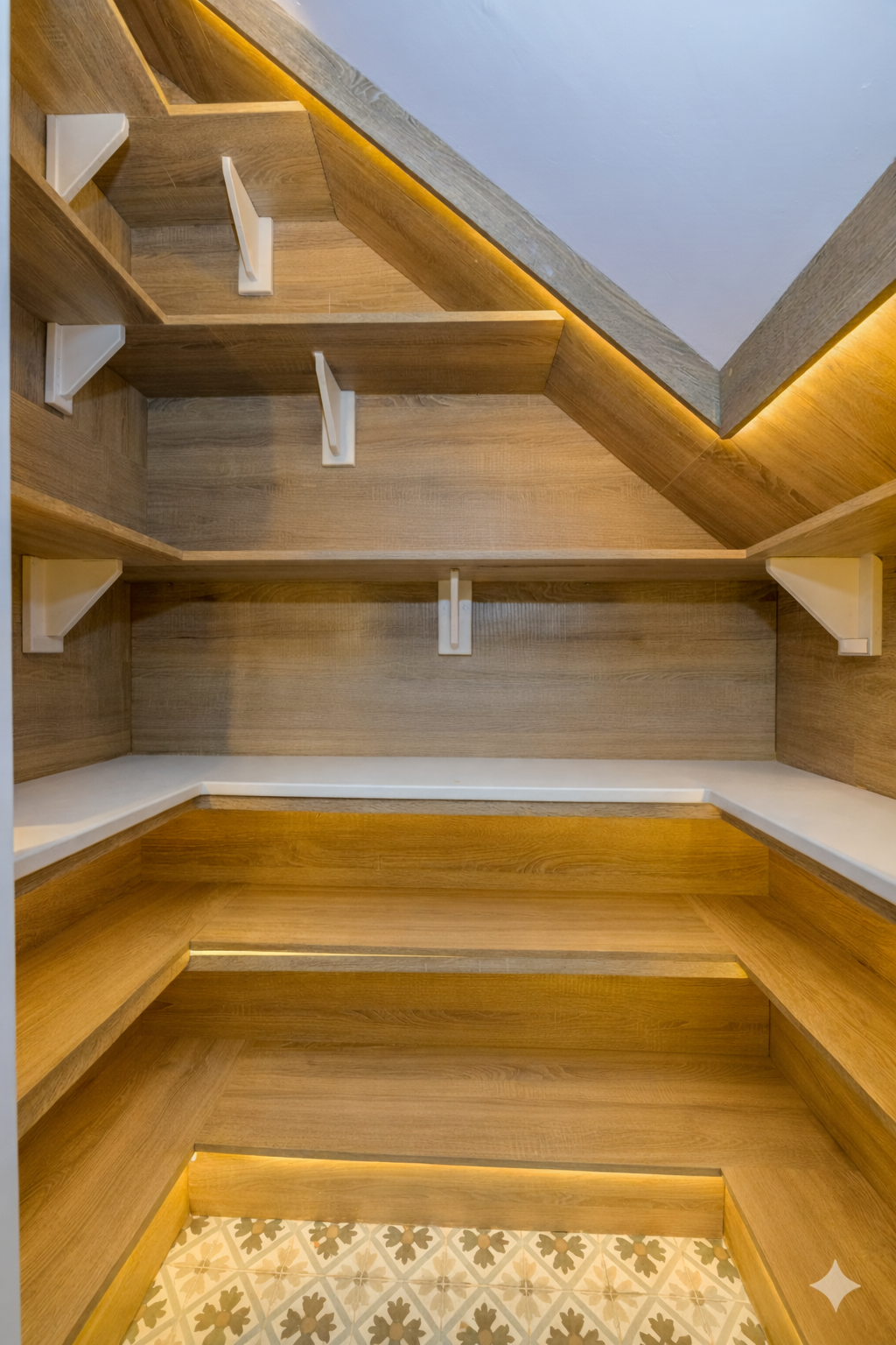 This bedroom features natural wood floors. The built-in wardrobes offer practical storage solutions while maintaining a seamless and elegant aesthetic.