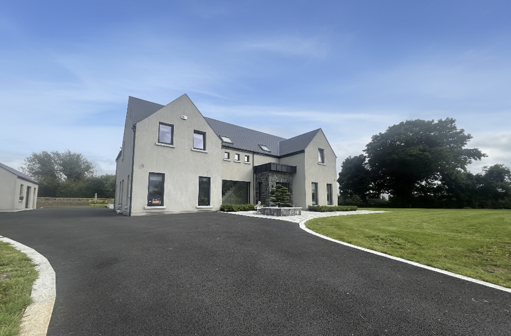 This house was constructed 1 year ago. The property and extensive gardens will make a wonderful family home for anyone with a proven local need requirement. This impressive residence is accessed through electric gates, leading to a tarmac driveway and meticulously maintained lawns. The interior has been decorated exquisitely with particular emphases on classical features of timeless elegance. This architectural designed home offers spacious kitchen/dining area, utility room, family bathroom, and four double bedrooms, two of which have en-suites. The master bedroom further offers a walk-in wardrobe, adding a touch of luxury. Situated on the outskirts of the village of Dunshaughlin the property offers convenient access to local amenities and is in close proximity to Dublin City centre and the airport.