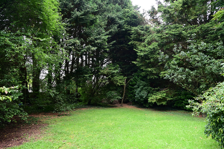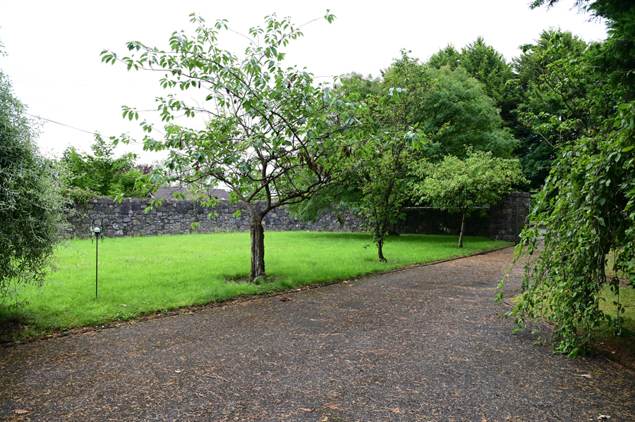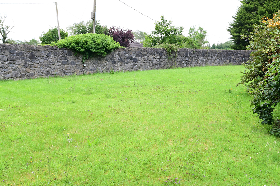 High stone wall to front and side.