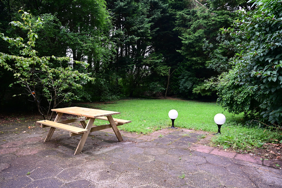 Gravel and patio area to rear.
